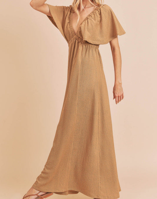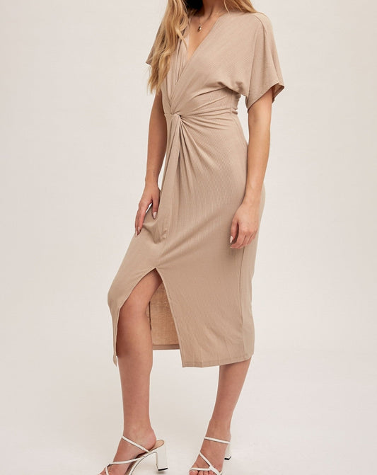 TWISTED FRONT KIMONO SLEEVE MIDI RIB DRESS