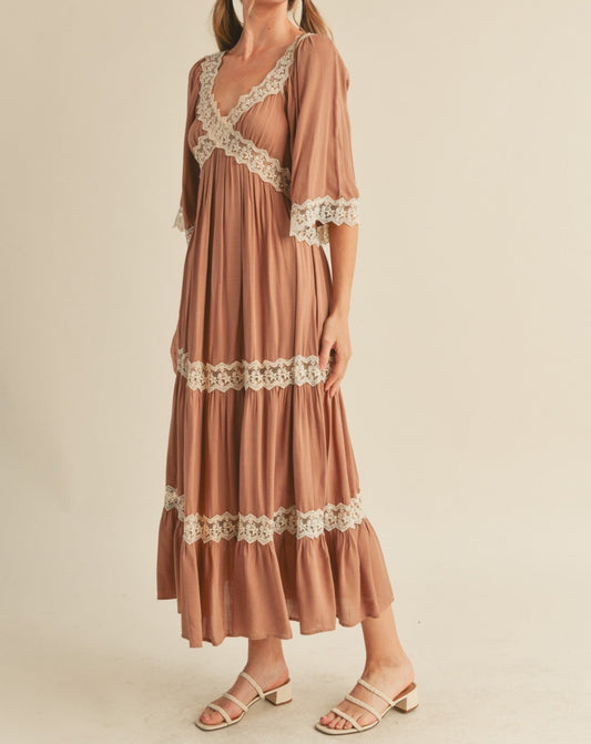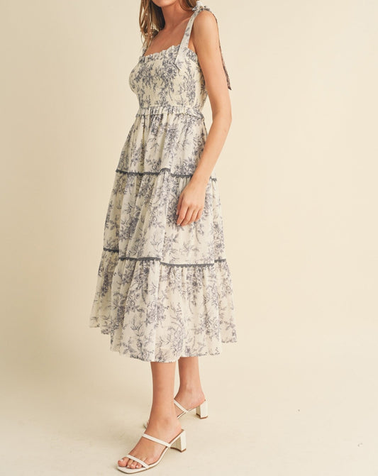 Sold outTIERED LACE TRIM FLORAL MIDI DRESS