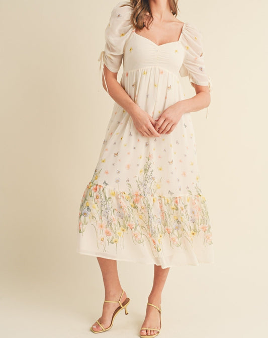 Sold outRUCHED SLEEVE FLORAL MIDI DRESS
