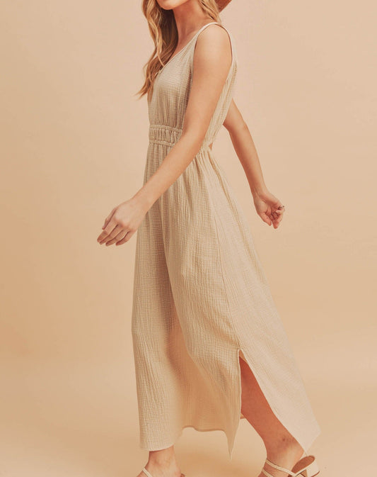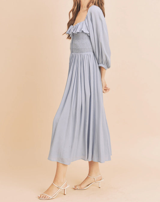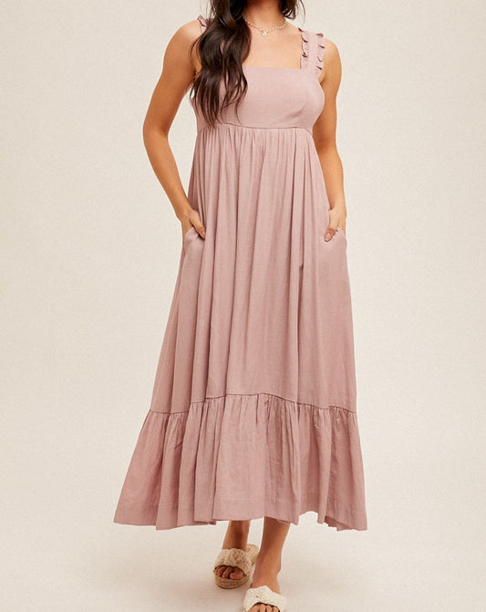 SQUARE NECK RUFFLED STRAPS BACK TIE MAXI DRESS